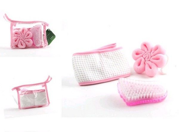 Косметичка на замочке -1 шт. Мочалка " Цветок" - 1 шт. Мочалка массажная -1 шт. Щетка - пемза для ног - 1 шт.
