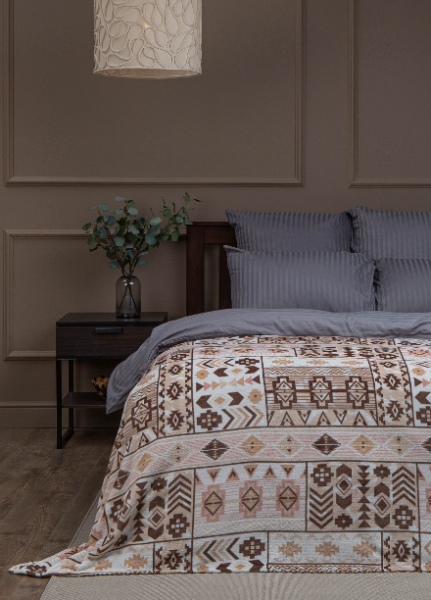Плед микрофайбер, 140х200, "Абстракция"набивной,фланель, цв. бежевый, TF FN F75